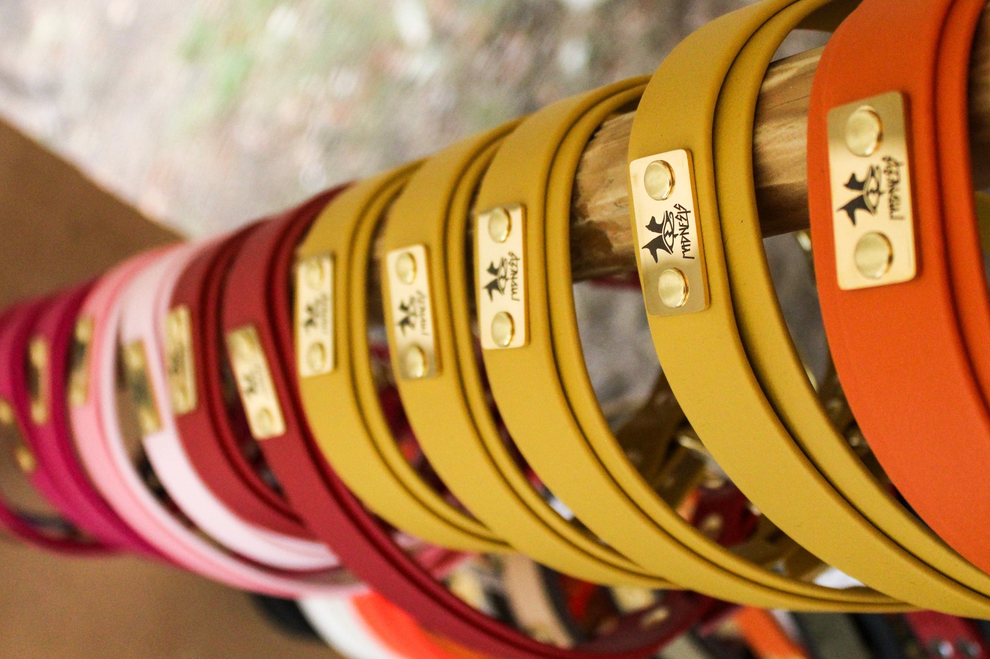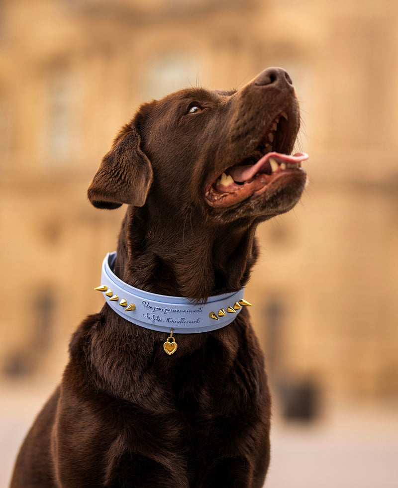 Nos accessoires sont fabriqués à la main avec du Biothane ultra résistant. Les boucles et anneaux sont en laiton massif. Des matériaux hauts de gamme choisis pour leur durabilité. Les décorations sont en aciers inoxydables (ex : chaînes, médailles,...)