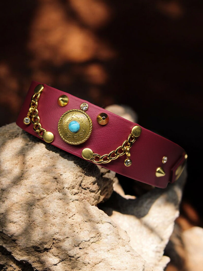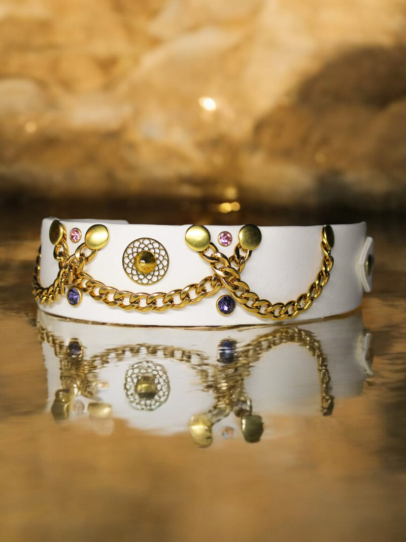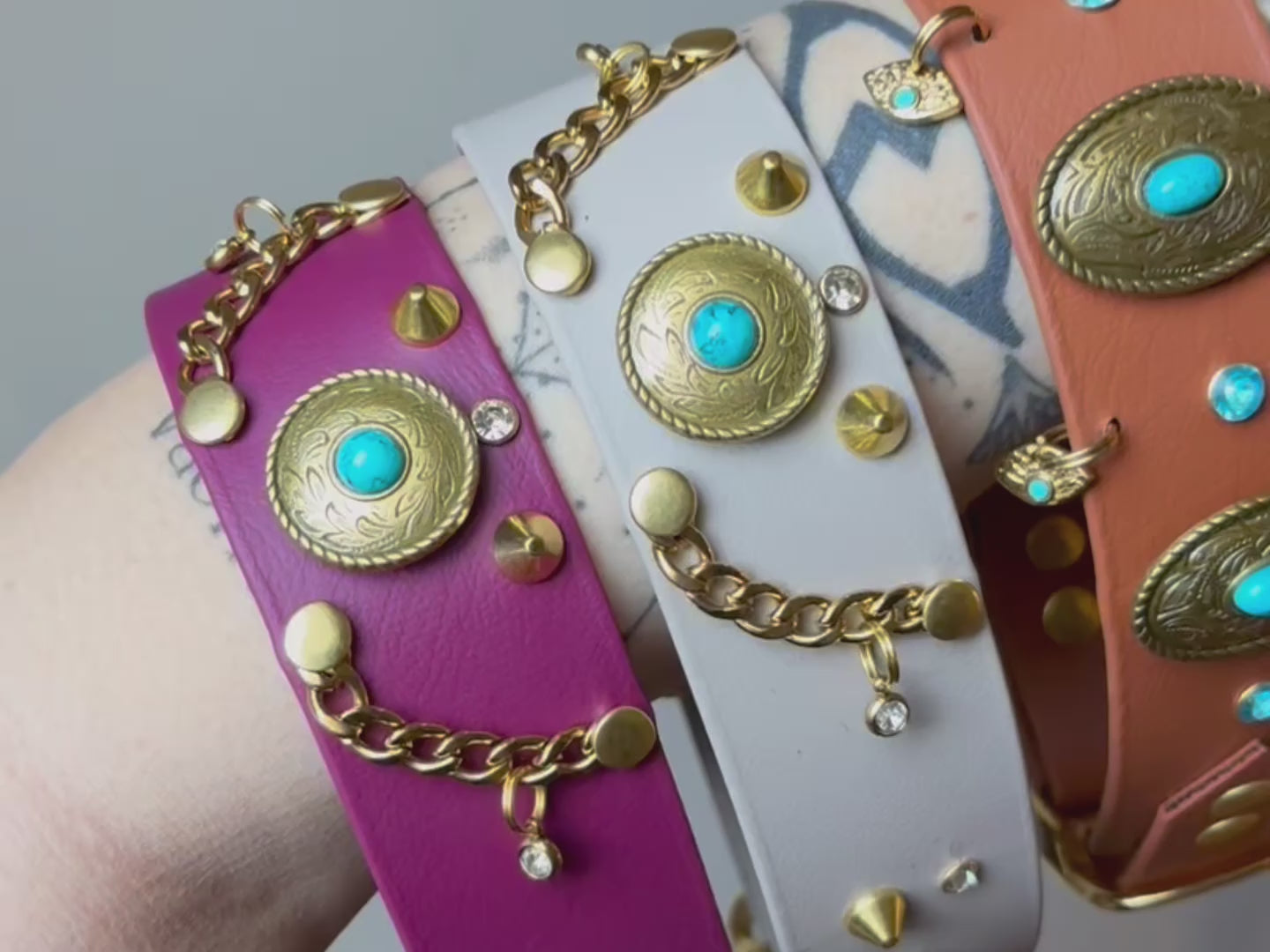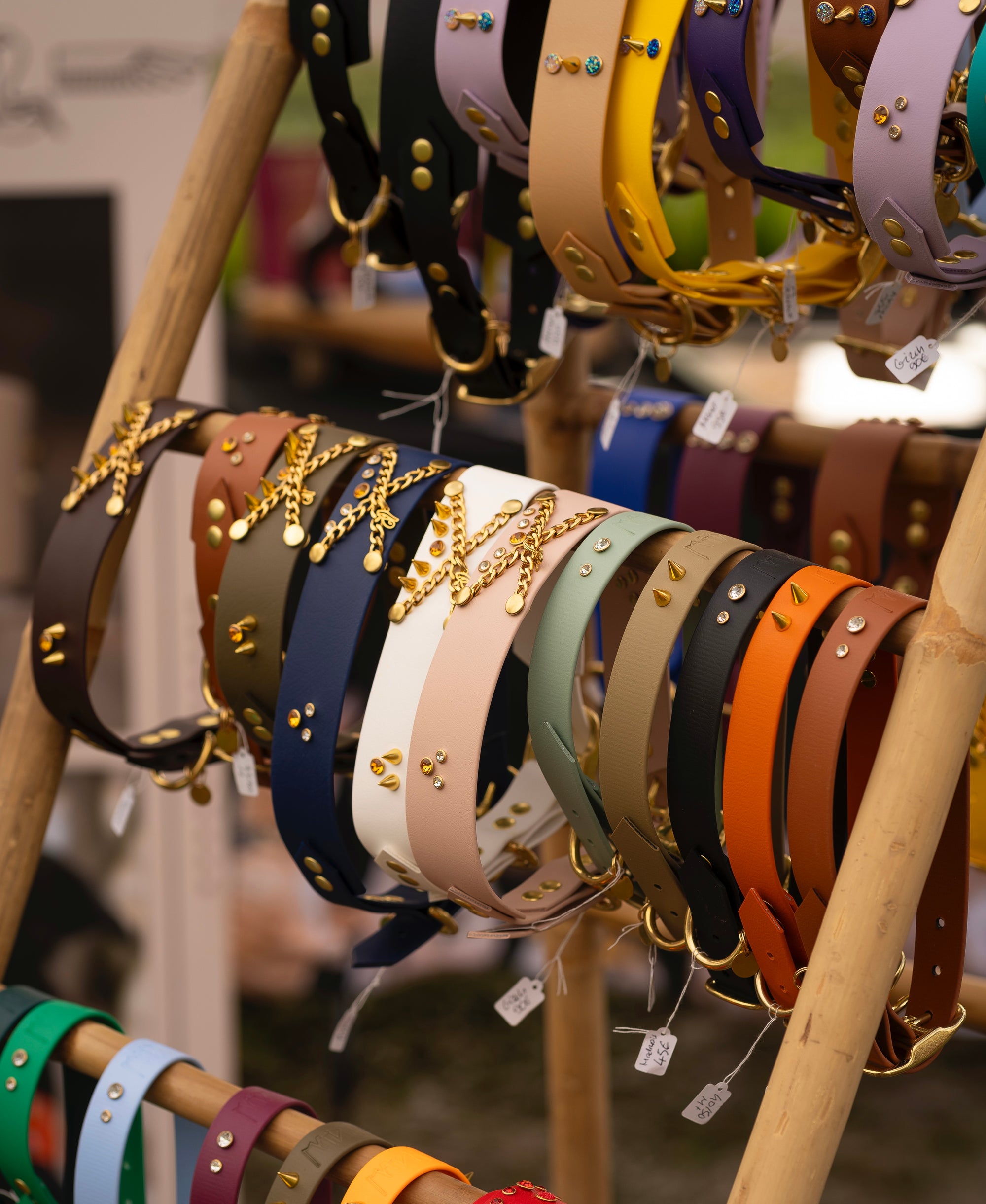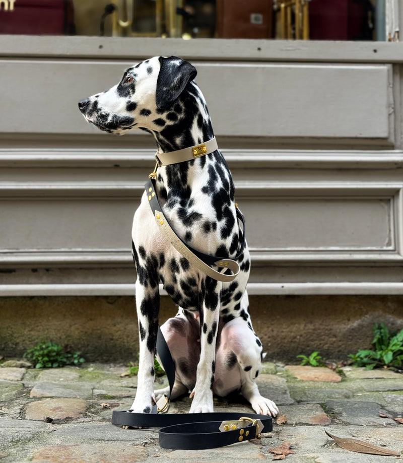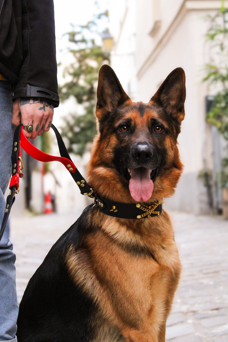 Nos accessoires sont fabriqués à la main avec du Biothane ultra résistant. Les boucles et anneaux sont en laiton massif. Des matériaux hauts de gamme choisis pour leur durabilité. Les décorations sont en aciers inoxydables (ex : chaînes, médailles,...)