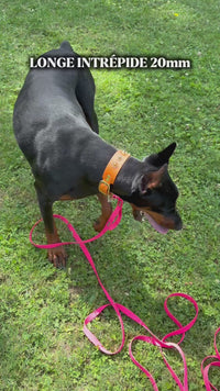 La longe Intrépide 20 mm est conçue pour les chiens puissants ou dynamiques, nécessitant du matériel fiable, durable et personnalisable.